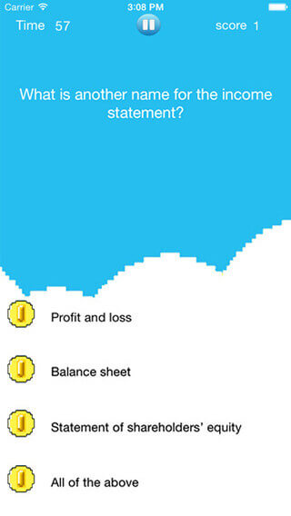 Accounting does not need to be so boring! Test yourself with what you want, when and where you want. TOPICs to choose from: General Principles, Account Types, Balance Sheet, Income Statement, Debits & Credits, USA Business Entities, Statement of Shareholders’ Equity, Statement of Cash Flows, Depreciation Methods, Bonds, Bookkeeping, Ratios, and More! UNLOCK ALL for the best value or unlock one level at a time.