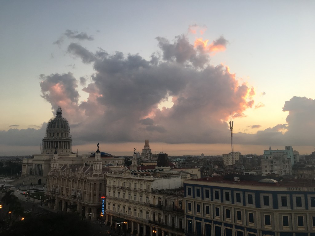 Salsa music paints the background and sun penetrates the windowless living room – as horns, televisions, and fifty year-old cars shift along the narrow bumpy streets creating a delightful cacophony. Smells of diesel fuel, fried plantains, and fresh coffee dance together. My host, Tony, walks along the rooftop fixing this and that, while his shirtless father in-law sips ron (rum). I too ditch the shirt and now sip delicious coffee. The capital building dome is barely in my view from the old center city of Havana, Cuba. One week ago I was dancing mid-calle (street) at mid-night, bringing in the New Year, 2017, while upper balconies dumped water from above to cleanse past year sins. Fidel is dead and the economy is alive, in strange and particular ways.